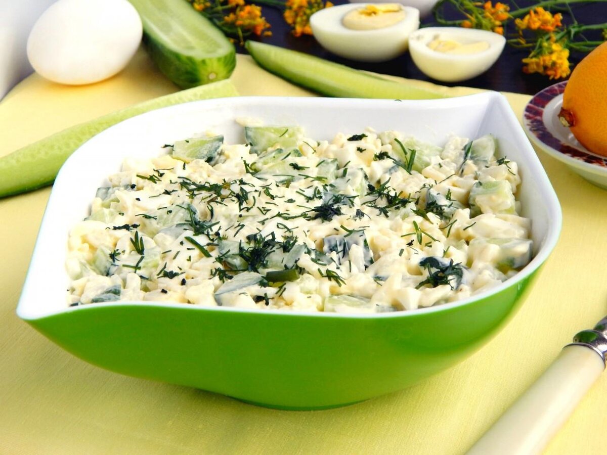 Ингредиенты: - 300 г куриного филе - 150 г огурцов - 150 г консервированного горошка (1⁄;2 банки) - 150 г сметаны - пучок укропа - соль Приготовление: Куриное филе отварить в течение 20 минут с момента закипания. Остудить. Огурцы порезать средними кубиками. Укроп мелко порезать. Куриное филе порезать средними кубиками. Сложить в салатник филе, огурцы, укроп, горошек. Добавить сметану, посолить, перемешать.