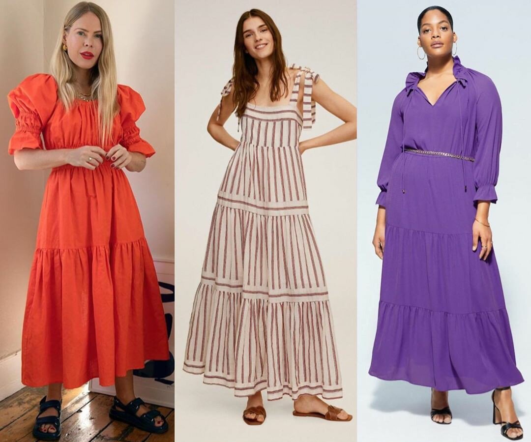 Многоярусные сарафаны и платья - один из ключевых трендов лета. Они очень удобные и просторные, шикарный вариант для жаркой погоды - никакого облегания и отличная вентилируемость. Отлично смотрятся в длине миди и макси, сочетаются с обувью на плоском ходу. Хорошо подходят дамам пышных форм, т.к. отлично маскируют объемы.
