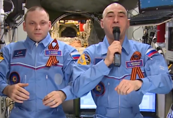 Космонавты Анатолий Иванишин и Иван Вагнер, которые прямо сейчас находятся на борту Международной космической станции (МКС), поздравили соотечественников с 75-летием Парада Победы 1945 года.