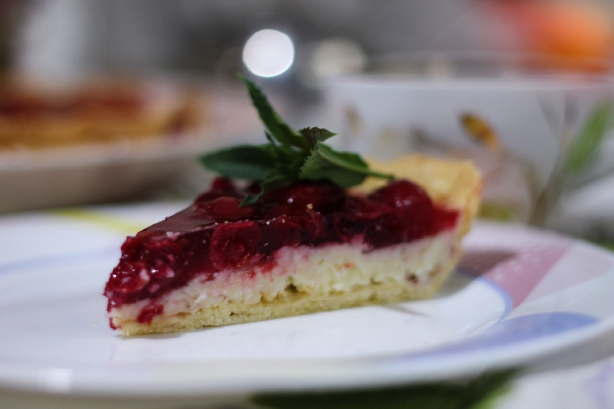 Крепкий кофе и ароматная выпечка: хрупкое песочное тесто, заварной крем и желе из свежей, только что собранной вишни. Что может быть лучше?
