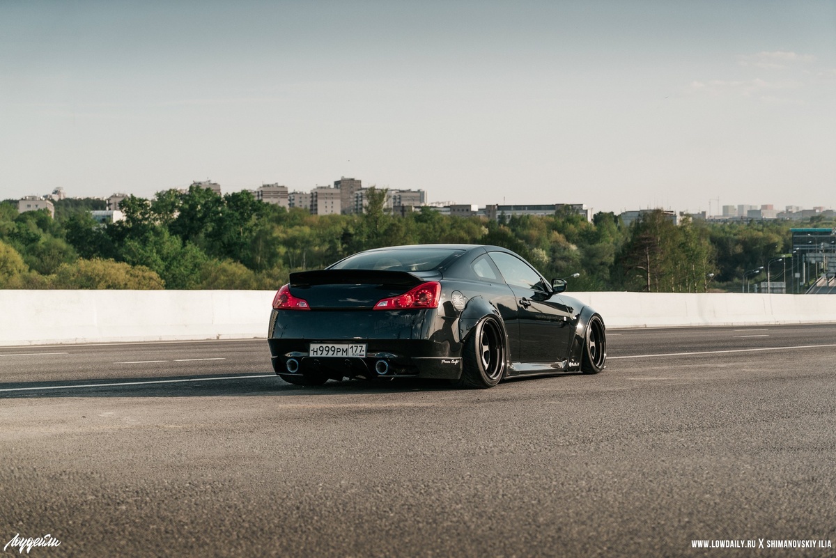 Герой нашей статьи – житель Москвы Роман – решил не искать легких путей и не лепить фендеры с авторынка на какой-нибудь гнилой ВАГ; он решил построить настоящий проект, широкий и… И немного эксклюзивный. А лучше – в некотором смысле единственный в России. Так и появилась идея заказать оригинальный кит расширения Liberty Walk для автомобиля Infiniti G37S.