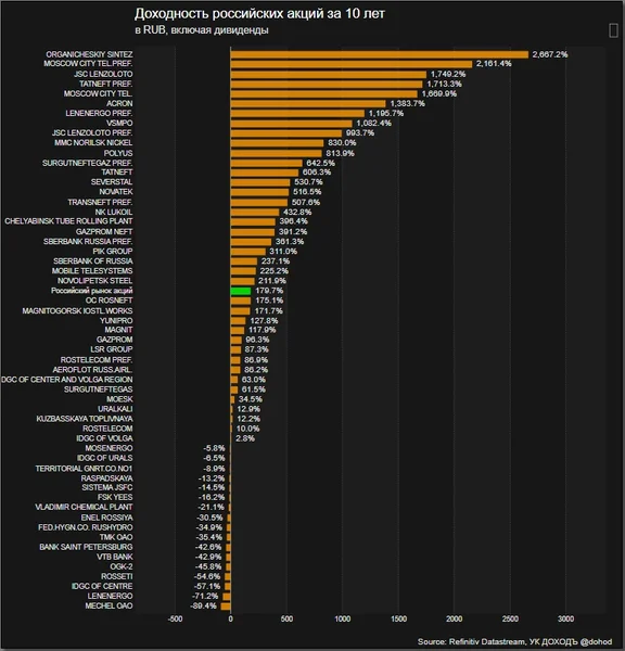 Несколько дней назад в наших социальных сетях мы опубликовали несколько графиков, иллюстрирующих доходность российских акций за последние 10 лет. Это должна была быть обычная рутинная публикация, но она переросла в эту статью из-за реакции наших читателей, большинство из которых сочли эту доходность очень низкой. Здесь мы проведем небольшой анализ этих графиков и попытаемся понять, какие выводы из них можно сделать.