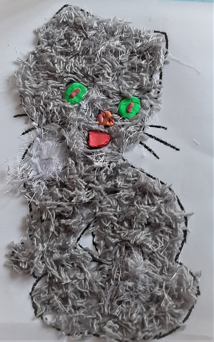 Материалы: Раскраска Котёнок ( или любая другая), пряжа можно несколько цветов, ножницы, пластилин для глазок, носа, рта, клей.для