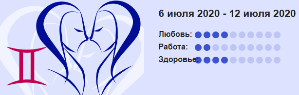 Перестаньте спешить, отпустите ситуацию и найдите помощников для более тяжелых домашних работ. Даже если не все будет идеально, это неделя будет успешной. Главное атмосфера, а не совершенство. На работе Вы будете чувствовать, измученными от обязанностей и с удовольствием отложите трудные задачи на потом. Не тратьте свое время впустую, так Вы всю неделю сохраните хорошее настроение. Свободное время способствует развлечениям. Одинокие Близнецы имеют все шансы на интересные знакомства, но избегайте людей с плохой репутацией. Если Вы знаете что этот человек разбил не одно сердце. Не думайте, что он исправится ради Вас. Звезды рекомендуют не тратить время на него. РЕКЛАМА ************************* Всю неделю Вы проведете в бегах, будете заняты множеством новых дел и обретете новых друзей. Вы будете в отличной форме, а удача будет Вам способствовать. Помните о собственных преимуществах и хватит краснеть, когда Вас будут хвалить. Соглашайтесь на премию, Вы это заслужили. Венера способствует с
