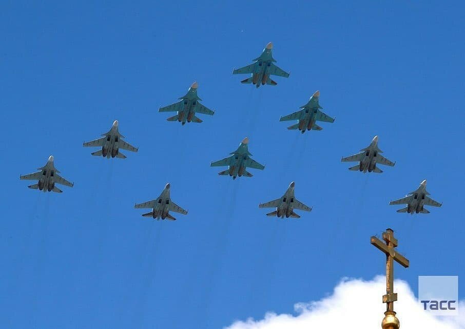 Авиация, взлетевшая с восьми аэродромов России, прошла над Красной площадью в составе 16 групп.⠀