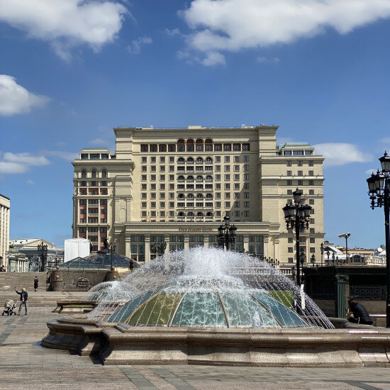 Той самой, настоящей, гостиницы «Москва» с нами уже нет. Ссылаясь на всевозможные структурные и инженерные проблемы, легендарный комплекс, который утвердил Моссовет, одобрил товарищ Сталин, а потом весь Союз строил в несколько этапов аж до 1977 года, разобрали в 2004 году, возведя в 2013 году на его месте реплику-новодел: ее поделили между собой ТГ «Модный Сезон», дорогие апартаменты для федеральной элиты и заморский пятизвездочный отель Four Seasons.