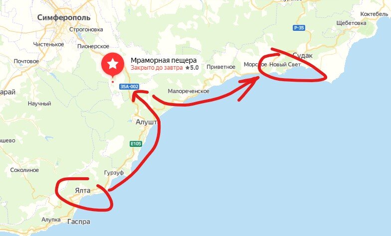 Продолжаем движению по Крыму с запада на восток и переезжаем из Ялты в Новый Свет. А по дороге заезжаем в Мраморную пещеру — одну из самых живописных оборудованных пещер в мире (я в других пещерах не бывал, так что верю Википедии на слово). Если про Мраморную пещеру вам не интересно, то листайте ниже, оглавление такое: