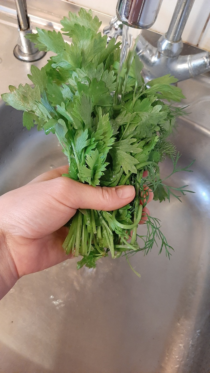 Укроп, петрушка, кинза, листья салата и зеленый лук - как-будто только с грядки Всем привет! Как и обещала, рассказываю, как в течение нескольких недель сохранять зелень в свежем виде, чтобы она не завяла и осталась полезной. Когда с дачи образуется много укропа, петрушки, кинзы, салата или зелёного лука, я сначала разделяю их на небольшие пучки. Такие, чтобы могли поместиться в небольшую баночку или стакан. Промываю под струёй холодной воды . Слегка стряхиваю воду и ставлю пучок зелени в баночку, оставляя на дне совсем немного воды. Той, что стечёт с листьев будет достаточно. Осталось только накрыть банку пакетом и убрать в холодильник на нижнюю полку. Способ очень удобный. Зелень уже мытая и всегда свежая, её можно сразу добавлять в блюдо. Попробуйте😉👍. А как вы храните зелень? Делитесь своими способами в комментариях. А если вам понравилась моя статья, ставьте лайк и подписывайтесь на мой канал в Дзене. Всем добра! 😇🙏