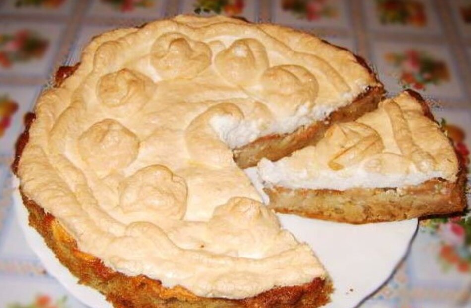 Ингредиенты: Лист дрожжевого сложенного теста 4 яйца Молоко 300 мл Мука 80 гр Сахар 60 гр Сливочное масло (топленое) 60 гр Яблоки Способ приготовления: 1. Раскатываем лист слоёного теста и застилает нашу посудину 2. Очищаем яблоки, режем и выкладываем хаотично на тесто. 3. Смешиваем яйца, молоко, муку, масло и сахар. Заливаем яблоки 4. Ставим в духовку на 20 мин при температуре 180 гр