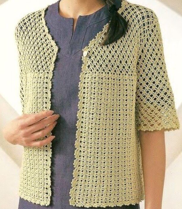 Всего через неделю начинается июль, самое жаркое время года и макушка лета. Классически. У нас в этом году макушка лета переехала однозначно на май, жара стояла адская, весь май за тридцатку. Каков-то будет июль…. В любом случае, неделю-две нам хватит, чтобы сваять крючком симпатичный жакетик для томных летних вечеров. Только представьте – безмятежная тишина после жаркого дня, взлетающая над горизонтом луна и низкий, насыщенный аромат лилий отдыхающего сада, тихое «ты накинь, дорогая, на плечи»… Остался только вопрос – что накинуть? К счастью, для вязальщиц эта проблема решаема, и мы с Хомяком в посильную помощь предлагаем несколько летних жакетов со схемами. Вдруг вам что-нибудь подойдет?