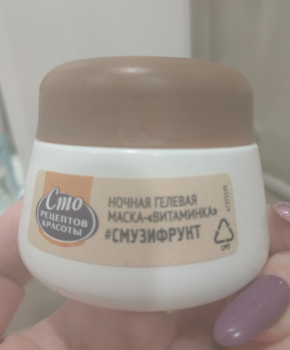 Сегодня представляю средство от ТМ Сто рецептов красоты "Ночная гелевая маска - витаминка СМУЗИФРУКТ. Стоимость в Магнит-косметикс ок. 100 руб. Содержит (по заявлениям производителей) манго, кокосовое молоко и масло семян чиа. Аромат потрясающий. Запах фруктовой свежести. Консистенция приятная, легкая эмульсия, которая почти мгновенно впитывается в кожу. Смывать не нужно. Мне маска подошла и понравилась. Кожа после нее свежая, увлажненная. Попробовать рекомендую! #пустые баночки