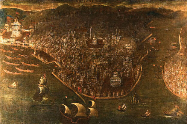 Преемник Рима, Константинополь пал 29 мая 1453 года. Тогда Мехмед II отдал свое страшное указание, которое обычно забывают в рассказах об истории Стамбула. Он разрешил своему многочисленному войску три дня безнаказанно грабить город. Дикие толпы хлынули в разбитый Константинополь в поисках добычи и наслаждений. Поначалу они не могли поверить, что сопротивление уже прекратилось, и убивали всех, кто попадался им на улицах, не разбирая мужчин, женщин и детей. Реки крови стекали с крутых холмов Петры и окрашивали воды Золотого Рога. Воины хватали все что блестит, обдирая ризы с икон и драгоценные переплеты с книг и уничтожая сами иконы и книги, а также выламывая из стен куски мозаик и мрамора. Так разграбили церковь Спаса в Хоре, в результате чего погибла уже упомянутая, самая почитаемая икона Византии – Божия Матерь Одигитрия, которая, по преданию, была написана самим апостолом Лукой.