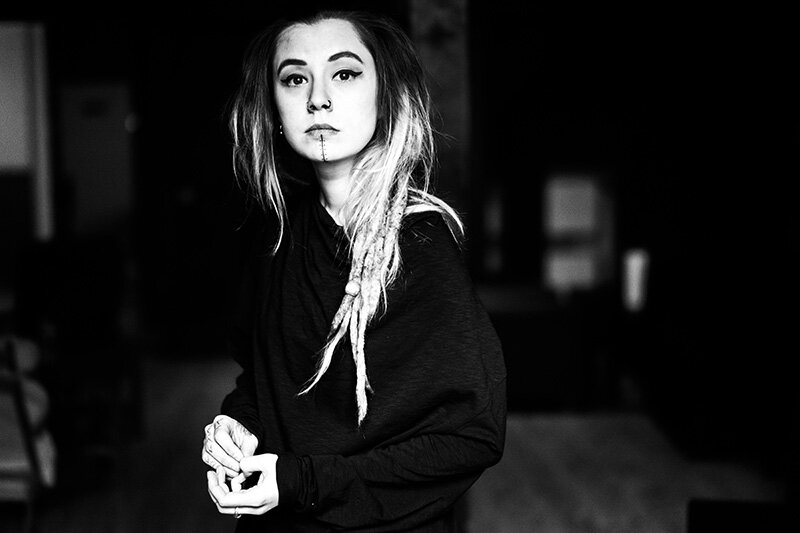 Вообще, к черно-белой гамме Катя поэтапно пришла, пожалуй, по трем причинам: переходный возраст, тяжелые переживания и депрессия из-за развода, и переезд из родной Калуги в Петербург. Туманная мрачность северной столицы поставила финальную точку в отношениях Кати с цветными красками.
