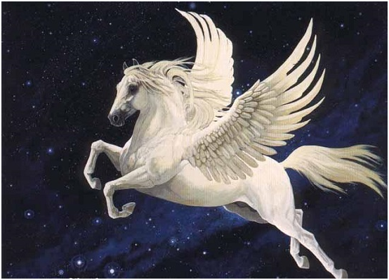 Пегас Крылатый конь, появившийся из умирающей Медузы Горгоны в тот момент, когда Персей отсёк ей голову. Поскольку конь появился у истоков Океана (в представлениях древних греков Океан был рекой, опоясывающей Землю), его назвали Пегасом (в переводе с греческого — «бурное течение»). Стремительный и грациозный, Пегас сразу стал объектом вожделения многих героев Греции. Днём и ночью охотники устраивали засады на горе Геликон, где Пегас одним ударом копыта заставил бить ключом чистую прохладную воду странного тёмно-фиалкового цвета, но очень вкусную. Так появился знаменитый источник поэтического вдохновения Гиппокрена — Лошадиный источник. Наиболее терпеливые, случалось, видели призрачного скакуна; самых удачливых Пегас подпускал к себе так близко, что казалось, ещё чуть-чуть — и можно дотронуться до его прекрасной белой шкуры. Но поймать Пегаса не удавалось никому: в последний миг это неукротимое создание взмахивало крыльями и с быстротою молнии уносилось за облака. Лишь после того,