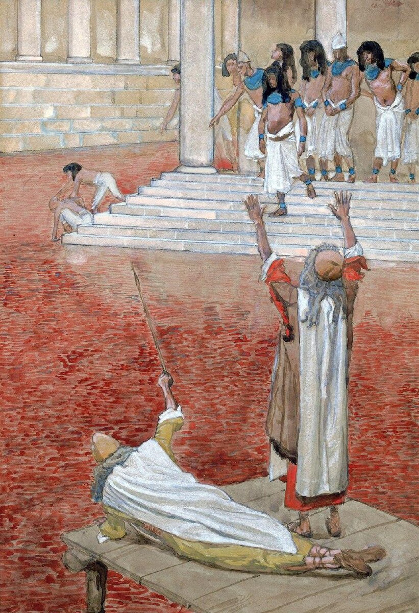 В одном священном произведении описываются десять египетских наказаний, какие наваливались на античную цивилизацию. Научным работникам посчастливилось отыскать научные разъяснения семи из них. Их причины обосновывались историческими фактами и нынешними изучениями. На остальные же три казни, свалившиеся на Древний Египет, эксперты пока что создают предположения. В одном священном произведении – «Пятикнижии», описываются расправы, какие постигли жильцов Древнего Египта. Предпосылкой для этого стало неготовность правителя спасти от рабских «цепей» и выпустить сыновей Израилевых. Во 2-ом томе «Пятикнижия» – книжка Исход, повествуется об том, как Моисей просит властелина Египта освободить его людей, в противном случае египтянам станет угрожать Божья расправа. Правитель категорически отказывался отпускать людей. Тогда Аарон приподнял трость. Он ударил нею по речной поверхности на глазах у властелина Египта. Вода в речке превратилась в кровь, а рыба исчезла. Таким образом, выглядела 1-ая к