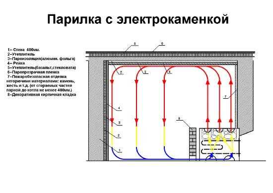 Благодаря электрокаменки вы избавитесь от проблем с топливом. Надо будет лишь щелкнуть выключателем, и через какое-то время можно отправляться париться. Сауна, оснащенная электрокаменкой, может быть сооружена в любом подходящем месте дома: Современная домашняя баня – это, как правило, обшитая древесиной кабинка, в которой установлена электрическая каменка и лежак. За те несколько лет, в течение которых осуществлялось массовое производство домашних саун «под ключ», успел сложиться стандартный вариант их конструкции и наполнения. Отведенный под сауну угол теплоизолируют посредством минеральной ваты, которую потом обтягивают алюминиевой фольгой. Стены сауны Стены сауны обивают деревянной вагонкой. Как правило, для этого берется вагонка из ольхи либо липы, реже – из осины. Такую же древесину применяют для выполнения лежаков и подголовников. Некоторые истинные ценители банных процедур готовы не пожалеть средств и при обустройстве парной используют древесину абаши. Это африканское дерево о
