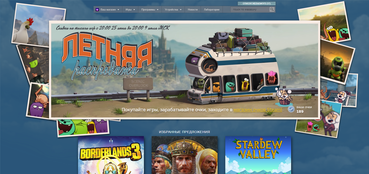 Новая распродажа началась, что стим приготовил нам на этот раз? Наконец, долгожданные летние скидки оккупировали платформу Steam. Но помимо этого, были добавлены очки, на которые можно будет приобрести эксклюзивные стикеры и получить награды. Улучшение профиля Одно из самых заметных изменений - обновление профиля Steam. Довольно неожиданно, но теперь профили выглядят более стильно. На некоторое время разработчики увеличили размер разделяющей линии витрин, но уже к концу дня поправку убрали. Также изменения затронули и меню редактирования. Магазин подарков на момент написания статьи я столкнулся с неполадками в работе магазина, а именно подключения к серверам Steam, но раздел обещает быть довольно интересным. В обмен за очки (их можно получить покупая игры по скидкам), можете получить аватарки, фоны, значки, золотой профиль, стикеры, эффекты или смайлики. Каждую неделю в меню распродажи можно получить бесплатный стикер. Все полученные на распродаже вещи нельзя будет обменять или