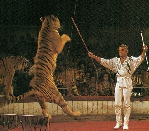 Из кабинета мы переместились на манеж цирка. Сарвату Михайловичу нужно было репетировать. Пост директора никак не повлиял на то, что он цирковой артист, который любит свое дело. Этот случай и стал введением меня в тайны дрессуры. Сарват Михайлович стоял на середине арены, беседовал со мной, а лошади сами, без каких-то команд делали все то, что я потом видел в программа. - То есть, что такое трудовая копейка, вы тоже с детства знаете. - О деньгах я никогда не думал. Во всяком случае тогда. Впервые задумался, когда уехал от родителей в Киев на смотр. Моя ставка составляла шестьдесят рублей. Организм молодой, кушать хочется…Денег не хватало. Просить деньги у родителей было стыдно. Мне повезло, я успел съездить на гастроли в Германию и вещи, которые привез оттуда, сдавал в скупку. - Гротеск наездник, жонглер на лошади…Понятно, что с лошадями вы нашли общий язык. Почему вы вдруг решили, что справитесь со слонами? - У Юрия Владимировича было много животных. Со многим он позволял мне обща