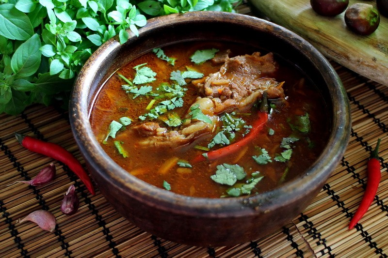 Как часто оно бывает, самые вкусные рецепты рождаются спонтанно, просто глядя на имеющиеся продукты. Так и тут. Разморозила мясо под жарку и... а не то достала-то из морозилки! Пришлось импровизировать. Вид мясика навевал мысли о супе. Особенно - о понравившейся в Узбекистане маставе. Легких путей искать не стала. Интернет? Готовые рецепты? Нет не слышала! Просто слепила из того что было. Поэтому ни о какой аутентичности речи нет. Это суп по мотивам. С нотками некими харчо. Но вкусснныыыый!