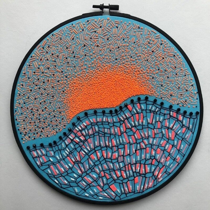 Рассматривая работы профессиональных мастеров, я учусь основам композиции и художественным способам передачи мыслей и впечатлений. Недавно я узнала о вышивальщице Стейси Джонс. Она живет в Лондоне и создает абстрактные работы, о которых ведутся споры в сети.