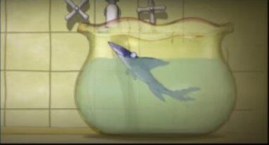 В одном школьном учебнике была такая история:у одной девочки жила в аквариуме рыбка, и у ее подруги в аквариуме тоже была рыбка.Однажды девочка должна была куда-то уехать, попросила подругу взять на время к себе рыбку, чтобы кормить.Она принесла рыбку в дом к подруге в банке, и 2 рыбки оказались в одном аквариуме вместе.Потом девочка приехала и забрала домой рыбку снова. Утром она проснулась и увидела в аквариуме мертвую рыбку.Рыбка, вырванная из естественной природной среды, лишенная общения с другими рыбками, развития, познания мира, свободного перемещения, вдруг хотя бы нашла друга.Но этого друга ,появившегося так внезапно, у нее отняли. И она умерла, потому что еще острее ощутила нежелание дальше жить. В этом чудесном мультфильме мужчина принес домой в аквариуме рыбку.Он лег спать, и ему приснилось ,что аквариум вылетел из дома и полетел по улице.Он пошел за ним.Рыбы летели по улицам ,он встретил детей ,которые танцевали, и сам стал ребенком. Он стал маленьким, и оказался вдруг