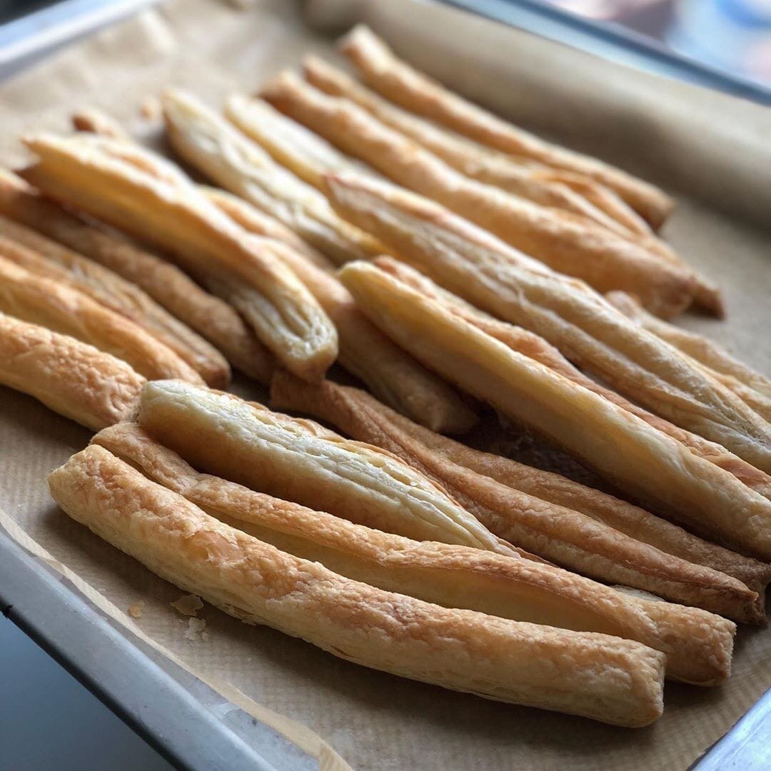 Всем любителям наполеонов очень рекомендую этот «ленивый вариант». Все очень просто , минимум затрат и временных и денежных , а торт получается великолепным. Готовится из готового бездрожжевого слоёного теста . (Мне нравятся три марки: талосто, звездное и едим дома). Нам понадобятся: 1 уп. теста, сливки 33% и выше - 350мл и сгущеное молоко - (270гр.пластиковая упаковка). Приступаем к приготовлению Тесто разморозить, чуть раскатать и нарезать полосками шириной 1,5 см. Выложить на пергамент и выпекать в разогретой духовке до 180 гр. до румяного цвета(около 15 минут). Крем: холодные сливки взбивать, добавляя сгущенку. Крем получается очень вкусный и нежный. Внимание: несколько палочек и часть крема отложить. Они понадобятся для украшения . Далее сборка: удобнее использовать фольгу, на которую выложить слой готовых палочек. Покрыть палочки слоем крема, затем опять слой палочек и слой крема и т.д. После придать форму «полена», обернув его фольгой. Убрать на ночь в холодильник. На
