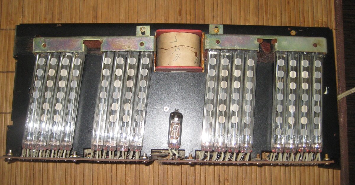 Чего только не сдают люди в чермет . Вот и на этот раз мне попалось несколько интересных устройств. К сожалению я даже не знаю что это такое. Обычно приемщики ставят условие: Без деревянных или пластиковых корпусов. И ещё несколько условий которые превращают вещь в безликую массу. В очередной раз вытряхнув из нескольких мешков на пол радиохлам, обнаружил любопытные приборы. Вот один из них: На первый взгляд полная комплектность, ни где ничего не нарушено и не сломано. Но при более детальном рассмотрении обнаружил , что всё таки чего-то на хватает. На обратной стороне торчат несколько оторванных контактов: Трансформатор целый, жгут проводов тоже цел, значит сняли не вандалы. Нашёл даже табличку с фамилией сборщика: Микросхемы датируются 1987-88 годами. Обозначений нет вообще. С таким аппаратом раньше я не сталкивался. Вот и возник у меня вопрос: Что это за прибор? Чего не хватает? Почему лампы на лицевой панели стоят не вертикально, а под углом в 5-7 градусов? Первый раз увидел
