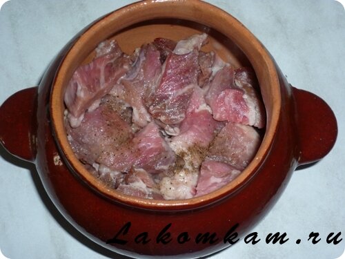 Блюдо из мяса «Гювеч». Приготовление. Мясо нарезаем средними кубиками.