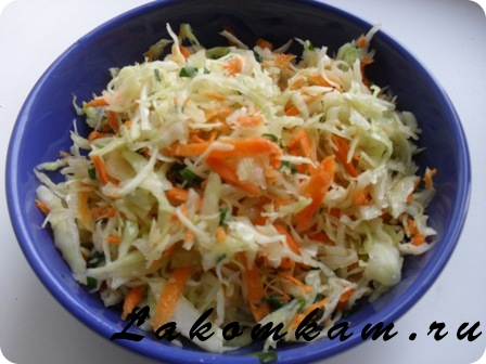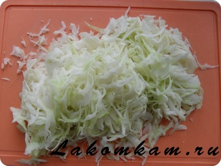 Салат «Из капусты и моркови». Приготовление. Капусту нашинковать.