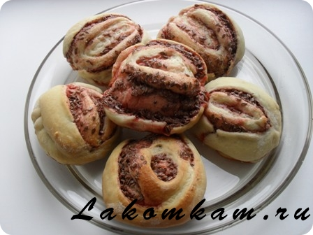 Сворачиваем булочки любой формы. Выкладываем на смазанный маслом противень.