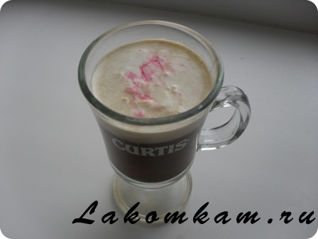 Осторожно, по краю, налить кофе. Перемешать.