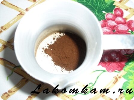 Напиток из кофе «Сливочная вишня». Приготовление. Кофе засыпать в турку.