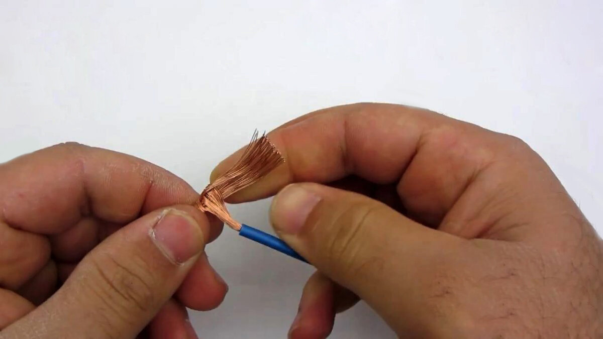 Приветствую, друзья! Возможно каждый из нас когда-то сталкивался с тем, что нужно было соединить многожильные провода между собой. И каждый делал это по стандарту, просто перекрутив два конца между собой. Скорее всего впоследствии приходилось переделывать. Так как прочность такой конструкции очень мала. Но зачем мучиться по нескольку раз, когда достаточно сделать один, но долговечный. Сегодня я расскажу вам как этого добиться. Для начала, с помощью ножика, нужно обрезать изоляцию. Порядка 4 сантиметров. Далее постарайтесь раскрыть жилы, чтобы получился мини-веник из провода. Далее несколько раз попытайтесь распределить жилы разных концов между собой. Нужно добиться такого эффекта, чтобы они максимально разношерстно находились. Старайтесь, чтобы провода пересеклись в центре зоны жил. Теперь мы имеем перекрещенные провода. Следующим шагом нужно начать мотать правый конец на левый. После чего провести такую же процедуру с левым концом. В итоге мы имеем надежную скрутку. А для проверк