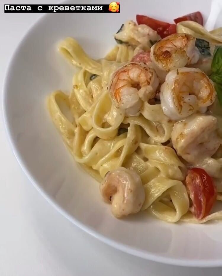 Паста с креветками и крем-соусом