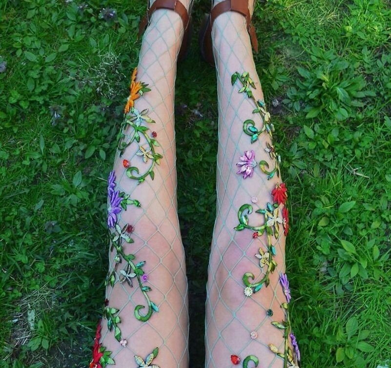 Расшитые цветами, стразами и пайетками колготки, это открытие для меня.