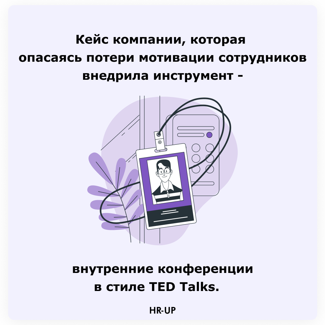 Были в гостях в химико-технологической компании. Их купил международный концерн и сократил все HR затраты, в том числе и на развитие. Раньше сотрудники на средства компании ездили на конференции и выставки, а сейчас только за свой собственный счет. Опасаясь потери мотивации они внедрили интересный инструмент - внутренние конференции в стиле TED Talks. Они сделали соревновательную систему, которая поощряет выступающих к созданию эффективных и интересных презентаций. Подобные конференции проходят раз в месяц, каждое выступления длится по 10 минут, зрители голосуют за лучшие в разных категориях. Мало кто ожидал, что будет борьба за то, чтобы стать спикером. В результате родилась система рейтингов. Все выступающие начинают с уровня - START. В течение года можно выступить 3 раза. Если участник занял одно из первых мест, то он переходит на ступеньку выше. Если за три выступления это не получилось, то попробовать еще раз можно через год. Следующая ступень - MIDDLE. Здесь уже разворачив