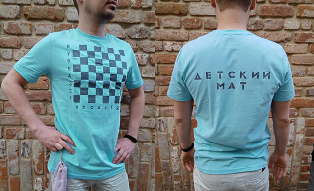 Если кто-то вдруг решит приобрести себе футболку, просьба учитывать, что их изготовление будет запускаться при достижении определенного количества заявок. Так, для комплекта "Детский мат" минимальный тираж - 6 штук. Для "Гроссмейстера" - 13 (но в данный момент имеется запас в 11 штук, в основном L-ки).