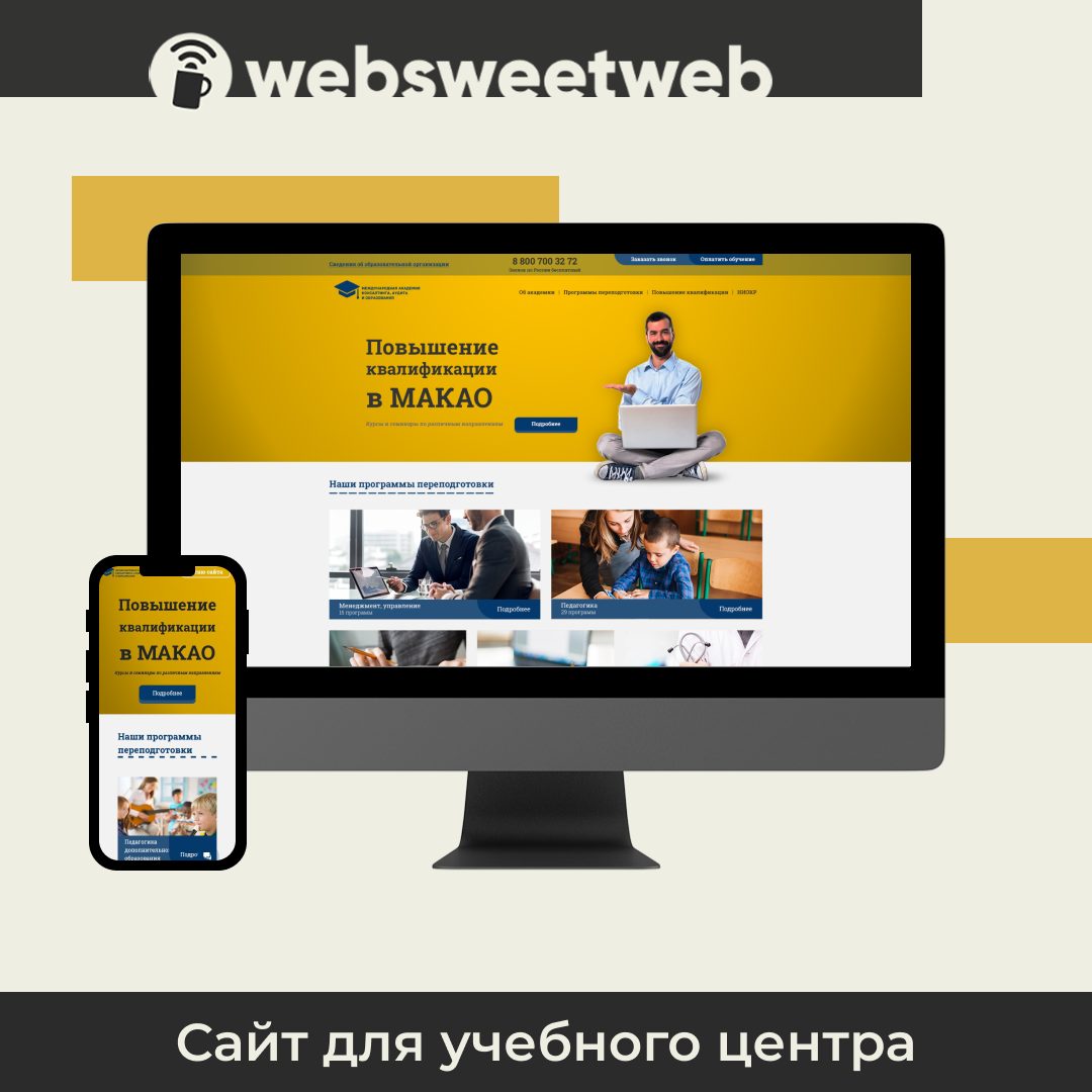 Приветствуем вас на канале студии websweetweb! Сегодня мы расскажем про еще одну работу из нашего портфолио – сайт для Международной академии консалтинга, аудита и образования. А если сокращенно - МАКАО. У МАКАО уже был сайт, когда они обратились к нам. Выполнен этот сайт был в черно-серой гамме, был крайне неудобен в использовании и не приносил ожидаемых результатов. Именно это и называется «сайт не работает». Так у нас появилась задача разработать новый сайт, а после и заняться его рекламой. Но пока не про рекламу - пока про сайт. Мы решили разработать новый сайт, отталкиваясь от концепции «Учиться это легко и весело», поэтому основными цветами были выбраны желтый и синий. Все основные элементы сайта мы сделали крупными и привлекающими внимание, чтобы пользователь не мог пройти мимо нужной и важной информации. Старый сайт компании работал на CMS Wordpress. И мы решили, что менять ее не нужно - новый сайт тоже работает на Вордпрессе. Сайту уже больше полутора лет, за это время мы усп