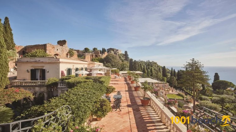 Belmond Grand Hotel Timeo – самый первый отель в Таормине, он был построен еще в далеком 1873 году. С тех пор здание неоднократно перестраивалось и реконструировалась, однако не утратило до наших дней своего неповторимого очарования. Гостиничный комплекс расположен на возвышенности, с которой открывается изумительный вид на побережье и вулкан Этна. Прямого выхода к морю у отеля нет, к пляжам организован бесплатный трансфер. По желанию гости могут разместиться в основном четырехэтажном корпусе или на вилле Flora, расположенной в нескольких метрах от него. Все номера современные