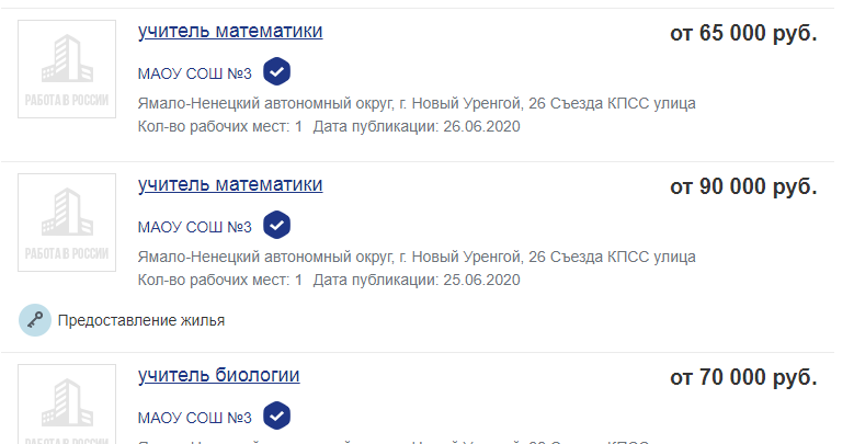 Я люблю использовать сайт trudvsem.ru тут очень хороший фильтр вакансий. На этой неделе я сделал 2 статьи на тему отпускных, у завуча как вы помните были выплаты в 478 тыс руб, а учителя ОБЖ 303 тысячи. Многие задают вопрос где и откуда, а Вы используйте например этот сайт, по моему его используют все кадровики в школах, наш кадровик точно его использует, когда бывает необходимость ЯНАО. Вот список вакансий первые три должности в ЯНАО: Появилась сегодня и вчера, СОШ №3, подозрительно конечно что сразу два математика с разными зарплатами, но и биолог тоже нужен, вообще по региону за неделю насчитывается 44 вакансии. Тем более в ЯНАО теперь сразу начисляются северные в 80%, не надо ждать 4 года или даже 8 лет. Это сумасшедший плюс, даже плюсище. Отпускные учителя биологии будущим летом будут в районе 280 тысяч минимум. Холодно правда. Камчатский край. Да, далеко. Это можно сказать экзотика. А вдруг кому то зайдёт?! Жильё дают, физику и информатику в Термальном посёлке. Там термальные во