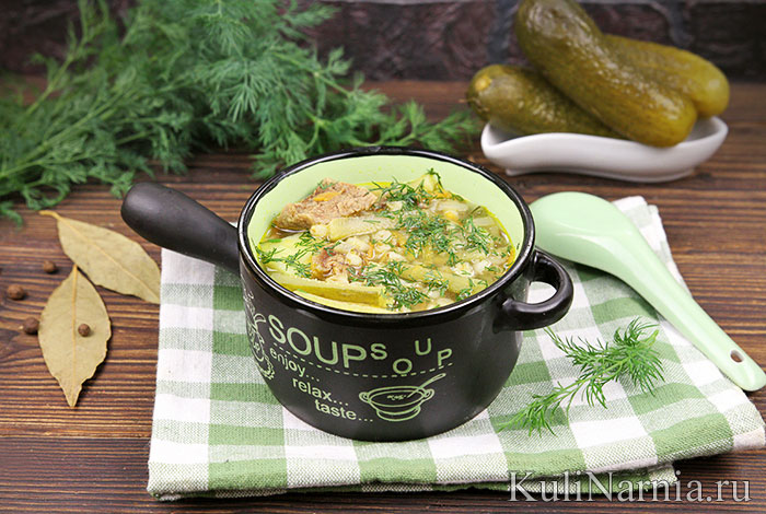 Рассольник с перловкой и солеными огурцами рецепт с фото