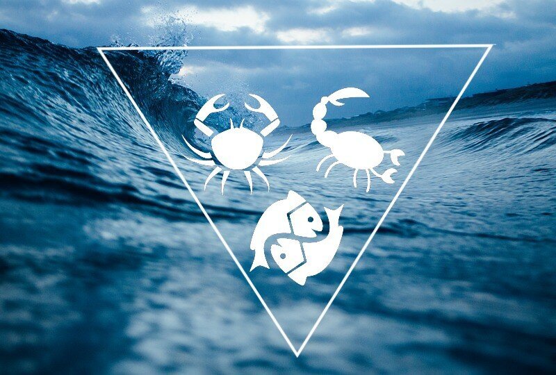 Вода может быть освежающей, как прохладный поток, или она может быть темной и таинственной, как глубина океана. С водой, с которой легко справиться, как с бассейном, вода, которая не содержится в воде и не поддается контролю, может нанести большой ущерб, как наводнение. Водные знаки представляют интуицию и эмоциональные аспекты, потому что он течет, и он жидкий, или он может быть твердым, как лед, он может испаряться в воздух и превращаться в облака. Вода сложна и парадокс, она везде и может быть чем угодно. Водные знаки являются наиболее эмоциональными из всех знаков, они стекают вглубь и ищут трещины и трещины для исследования, символизирующих неизвестные эмоции человеческой психики. Вода необходима не только для жизни и охватывает весь земной шар, но и составляет самый большой процент всех живых существ. Так как вода есть везде, люди, знакомые с водными знаками, умеют общаться с другими, они могут видеть других людей, они понимают мотивы и потребности других людей и, сум