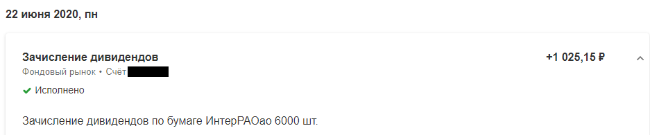 На этой неделе на счёт поступили дивиденды Интер РАО: