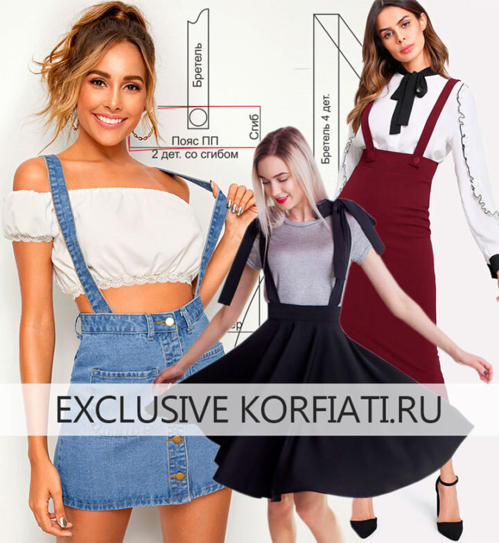 Если вы хотите придать вашим любимым юбкам новое прочтение, то более простого способа, чем дополнить их бретелями — не найти! Только взгляните на эти очаровательные модели! Классическая юбка-карандаш, юбка-солнце и джинсовая юбка-трапеция — три абсолютно разные модели на длинных бретелях одинаково эффектно выглядят. Предлагаем вам готовые выкройки этих очаровательных юбок, которые вы можете сшить