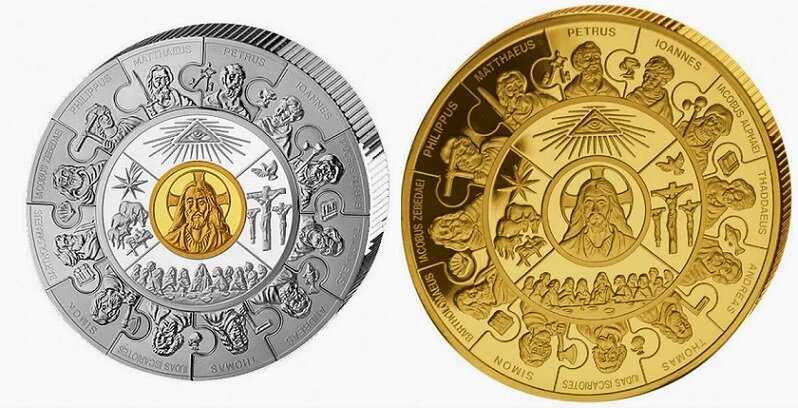 Для почти всех людей монеты являются просто мелочью, которой можно расплатиться, но есть определенная отрасль - нумизматика. Эти люди коллекционируют редкие и красивые монеты со всего мира. Сейчас я вам покажу 2 часть из списка о самых красивых монетах. 1) Монета 12 апостолов, Либерия, 2008 год. Монета представляется в двух вариациях: серебряная, с золотой вставкой внутри; из чистого золота. Монета, выполненная из чистого золота весит 155,5 грамм, имеет пробу 999. Номинал монеты 250$ Либерии. В 2007 году Либерия представила ко вниманию монеты на религиозную тематику: на монете изображены 12 апостолов. В центре помещён Иисус Христос. Рыночная стоимость монеты ~680.000₽ 2) Монета Тщеславие, КФА, 2018 год. Тщеславие - монета "мрачной" серии, содержит 3 розы, с нанесённой на них красной эмалью и хрустальный череп с красталами Сваровски за место глаз. Монета выпущена в 2018 году, имеет номинал 1.000 франков КФА. Это серебряная монета 999 пробы, вышла тиражом 1.750 штук. Рыночная стоимость