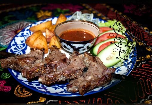 Шашлык из каре ягненка является одним из самых вкусных блюд. Убедитесь в этом сами! Состав; каре (ребра) баранины, специи, гарнир, помидоры, огурцы, лук, соус
