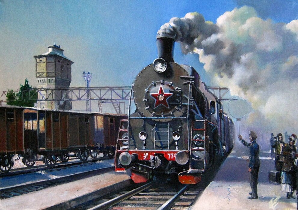 Вагоны стучат. Уже все спят, кто лёжа, кто сидя. Иногда по коридору пройдёт конвойный солдат, зевая.