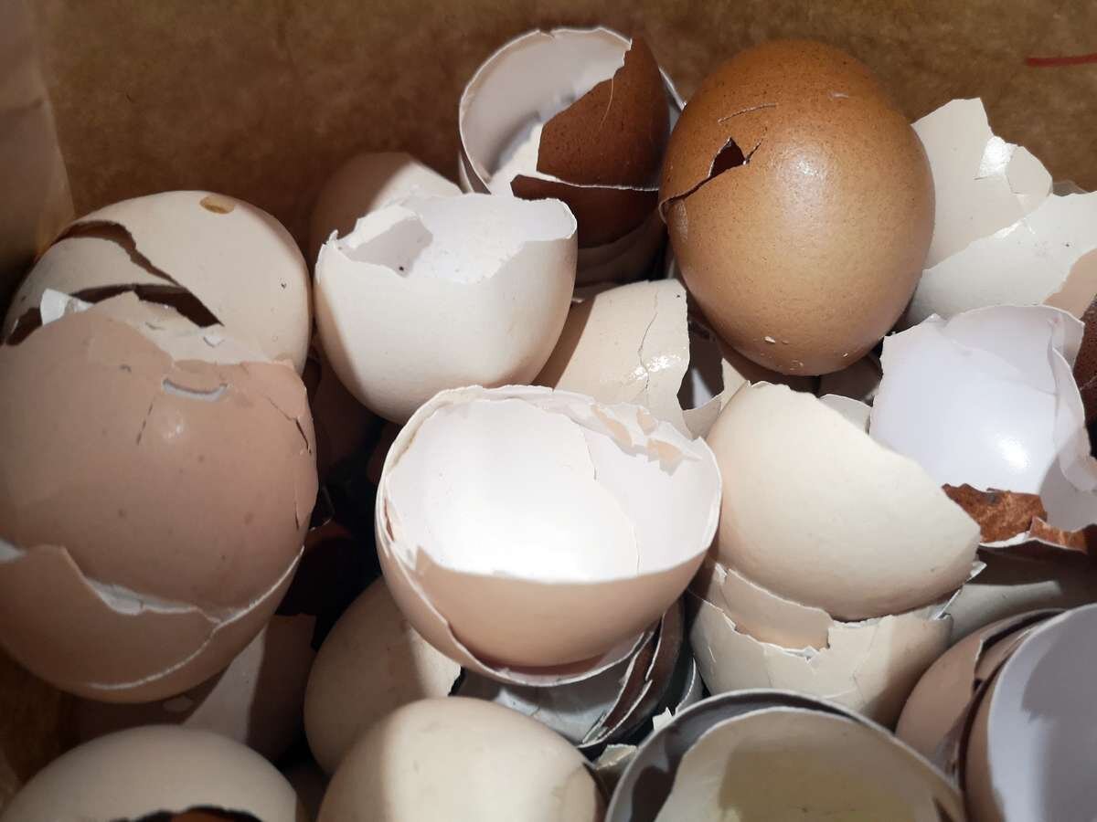 - Измельченной яичной скорлупой. Скорлупа яиц состоит на 100% из кальция, который необходим всем растениям. Перекормить нею посадки невозможно – они возьмут столько кальция, сколько им требуется. Достаточно слегка помять или растолочь скорлупу, прикопать ее вблизи посаженного кустика, либо посыпать вокруг. Тогда она заодно отпугнет улиток и слизней.