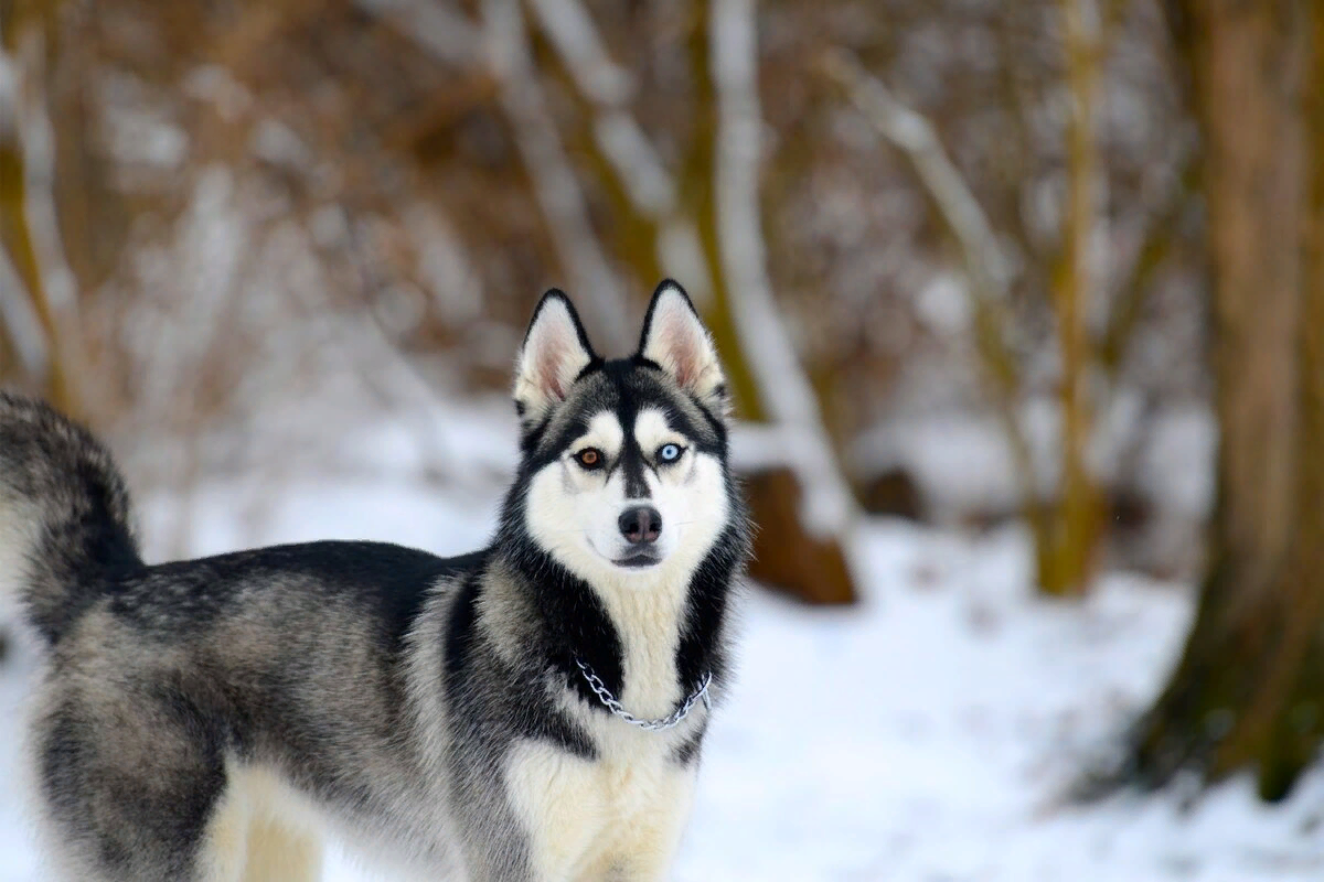 Окрас – от чисто белого до черного. На голове присутствуют белые отметины в виде маски, характерные только для хаски.