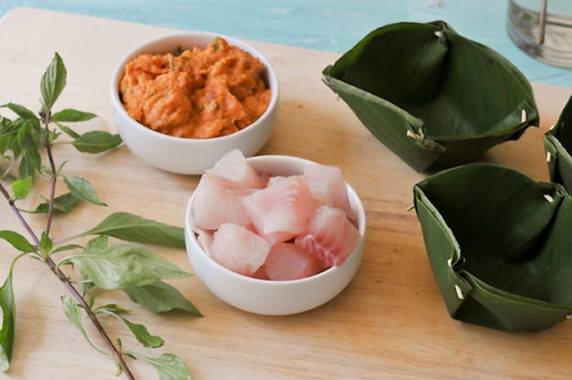В Таиланде Хо Мок традиционно готовится в пальмовых (банановых) листьях. Из них делают корзиночки , хитрым образом сплетая , или просто скрепляя их степлером , или зубочистками.